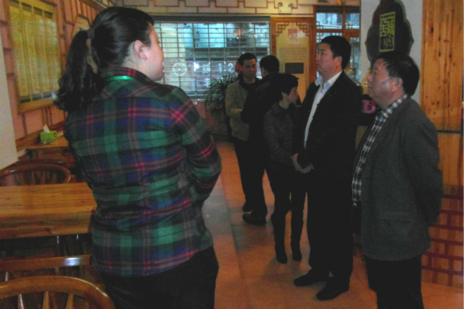 2013年3月27日下午,國家工商總局市場司周處長一行在市工商局朱副局長、縣工商局許局長等陪同下蒞臨我公司進(jìn)行檢查指導(dǎo),公司相關(guān)領(lǐng)導(dǎo)全程陪同,熱忱接待。周處長一行在朱副局長等領(lǐng)導(dǎo)的陪同下首先來到我們的醋吧展示廳,在講解員的接待和介紹中了解了老醋公司的品牌歷程、企業(yè)榮譽(yù)、醋文化等。周處長充分肯定了老醋公司近年來取得的成績并提出了保護(hù)、發(fā)揚(yáng)老醋傳統(tǒng)技藝、文化等要求。接著,周處長等領(lǐng)導(dǎo)參觀了全國保留最完整的傳統(tǒng)老醋釀造工藝,近距離地觀看了糯米炒熟、紅曲攪拌、紅酒發(fā)酵的情形,在切身感受到純手工釀造的不易和紅酒池散發(fā)的濃濃酒味中體會到了永春老醋在用料和釀造工藝流程方面的獨(dú)到優(yōu)勢。.jpg)