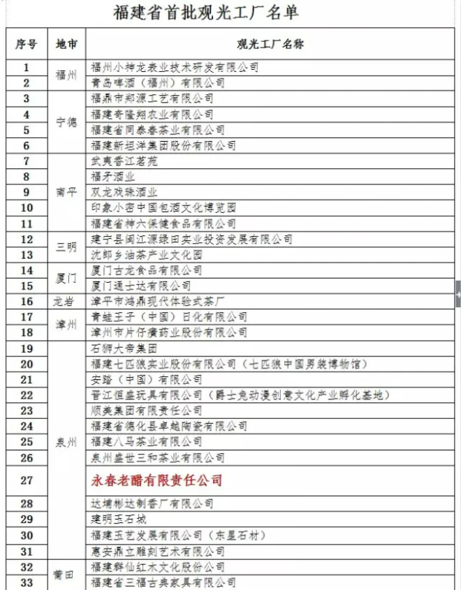 熱烈慶祝永春老醋公司入選福建省首批觀光工廠