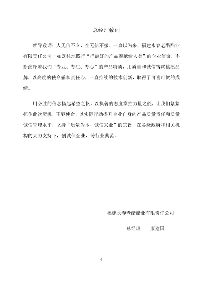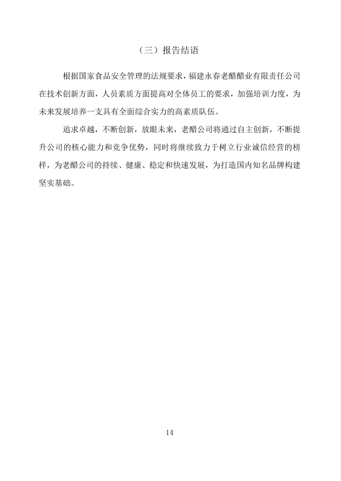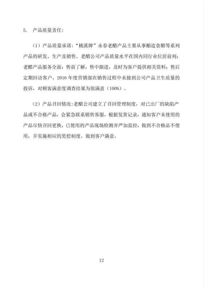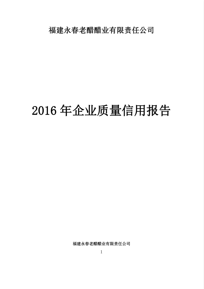 福建永春老醋醋業(yè)有限責(zé)任公司2016年企業(yè)質(zhì)量信用報告