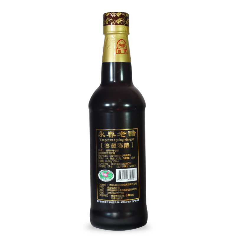 選用優(yōu)質糯米、紅曲、芝麻、原產地水源等為原料,傳承千年獨特釀造工藝(液態(tài)深層發(fā)酵),純糧釀造;在半地下室的窖藏車間里,按照古法釀造工藝,純手工制醋,經年累月,邊發(fā)酵邊陳釀,平均陳釀時間十年起,酸度6.5左右。故產出的老醋香味醇厚,濃酸微甜,零添加劑,回味悠長,是永春老醋中的精品。